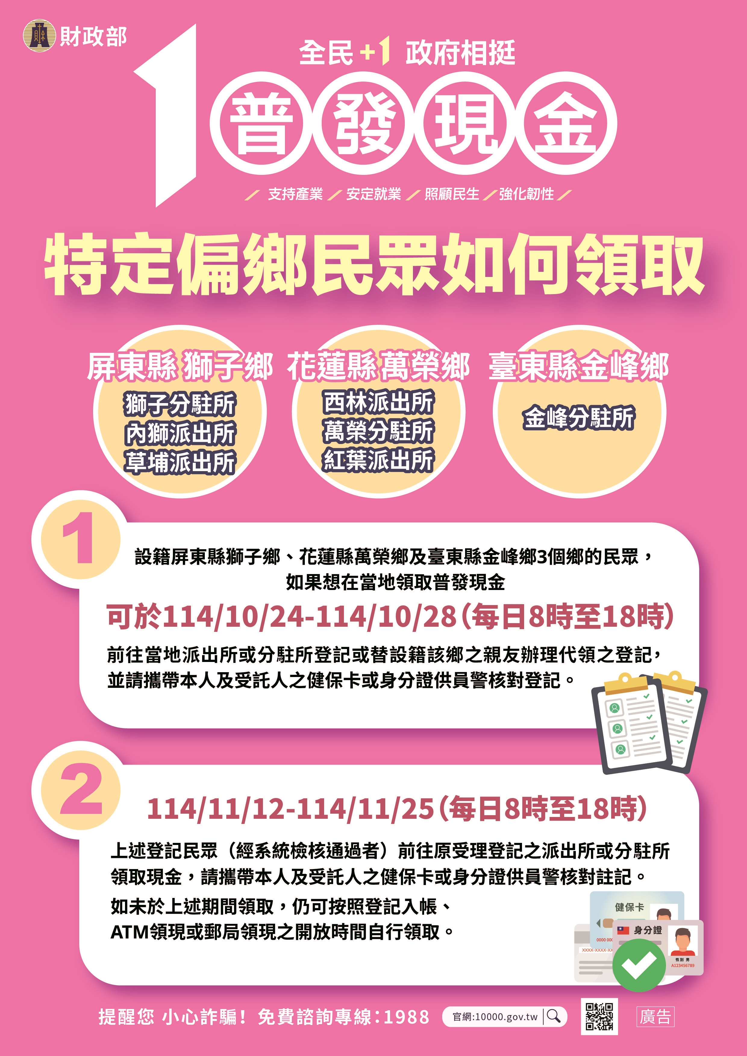 遇到問題或想確認資訊,快上官網或撥打專線,記得告訴親朋好友,一起+1領現金!