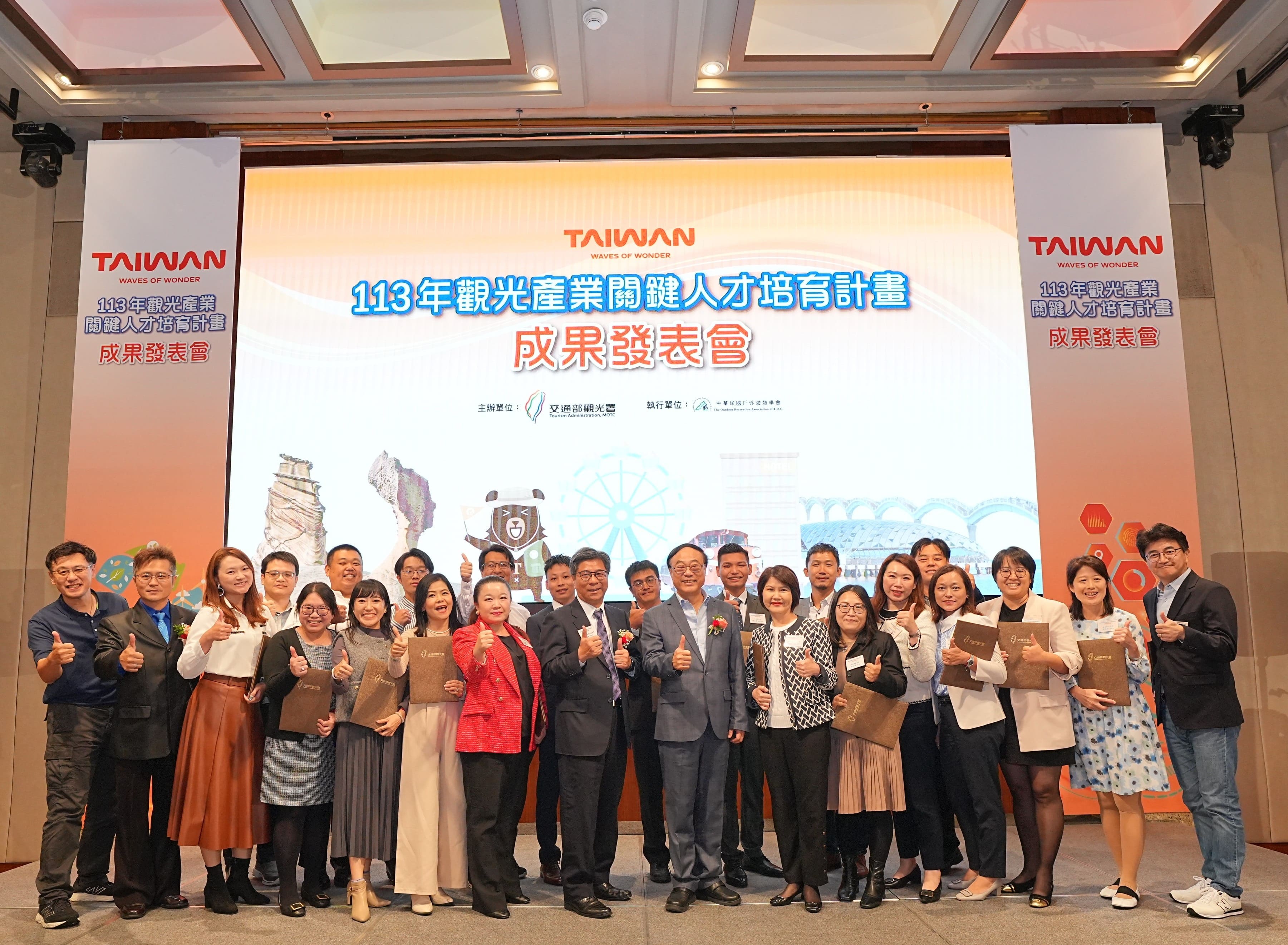 為推動觀光產業永續創新與數位轉型,交通部觀光署於113年積極推動「觀光產業關鍵人才培育計畫」,以增進從業人員專業素養,進而帶動整體產業升級。此項計畫聚焦於「永續x數位」雙軸轉型,透過高階主管養成班、中階主管培訓及觀光論壇等三大課程,協助從業人員建立更具前瞻性的視野,並於本(113)年12月3日在台北遠東香格里拉舉辦成果發表會,分享全年度的培訓成果。