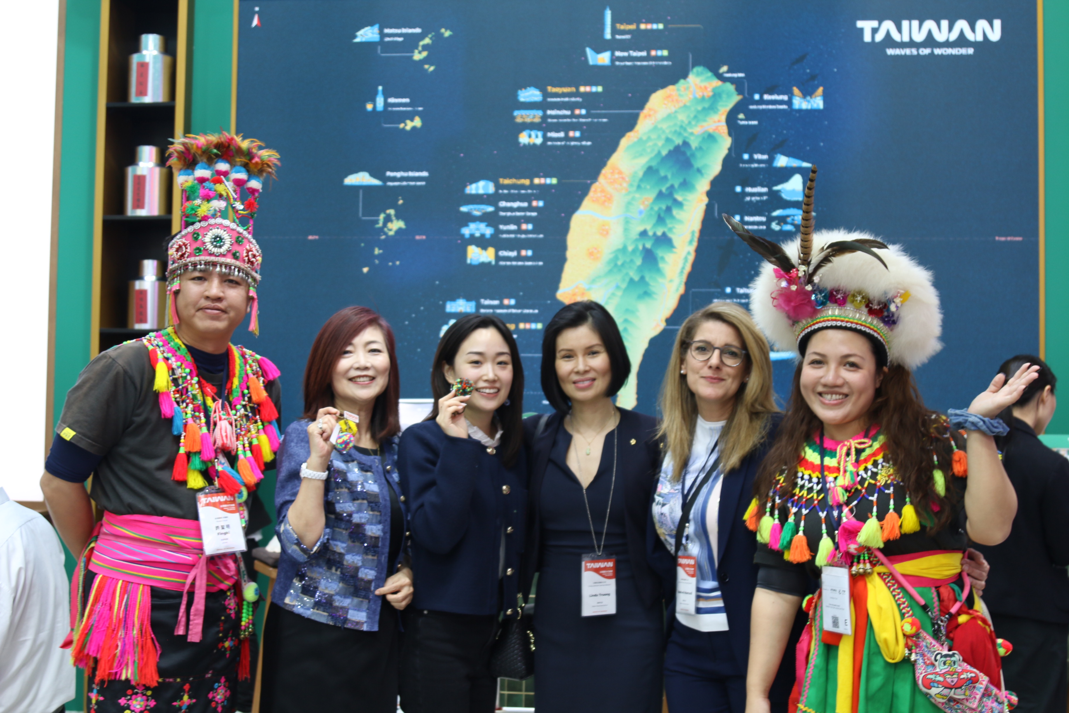 本次呼應大會「The World of Travel Lives Here」的主題,臺灣館以獨特的「茶驛站」概念,巧妙融合臺灣引以為傲的飲品文化,向世界展示臺灣作為亞洲首選旅遊目的地的強大魅力。臺灣館巧妙結合鐵道旅遊意象與自然人文之美。館內透過LED螢幕動態呈現臺灣多元觀光魅力,洽談區則以茶館為靈感,營造溫馨舒適的商務空間,讓訪客沉浸在臺灣的熱情好客氛圍中,獲得與會來賓激賞。