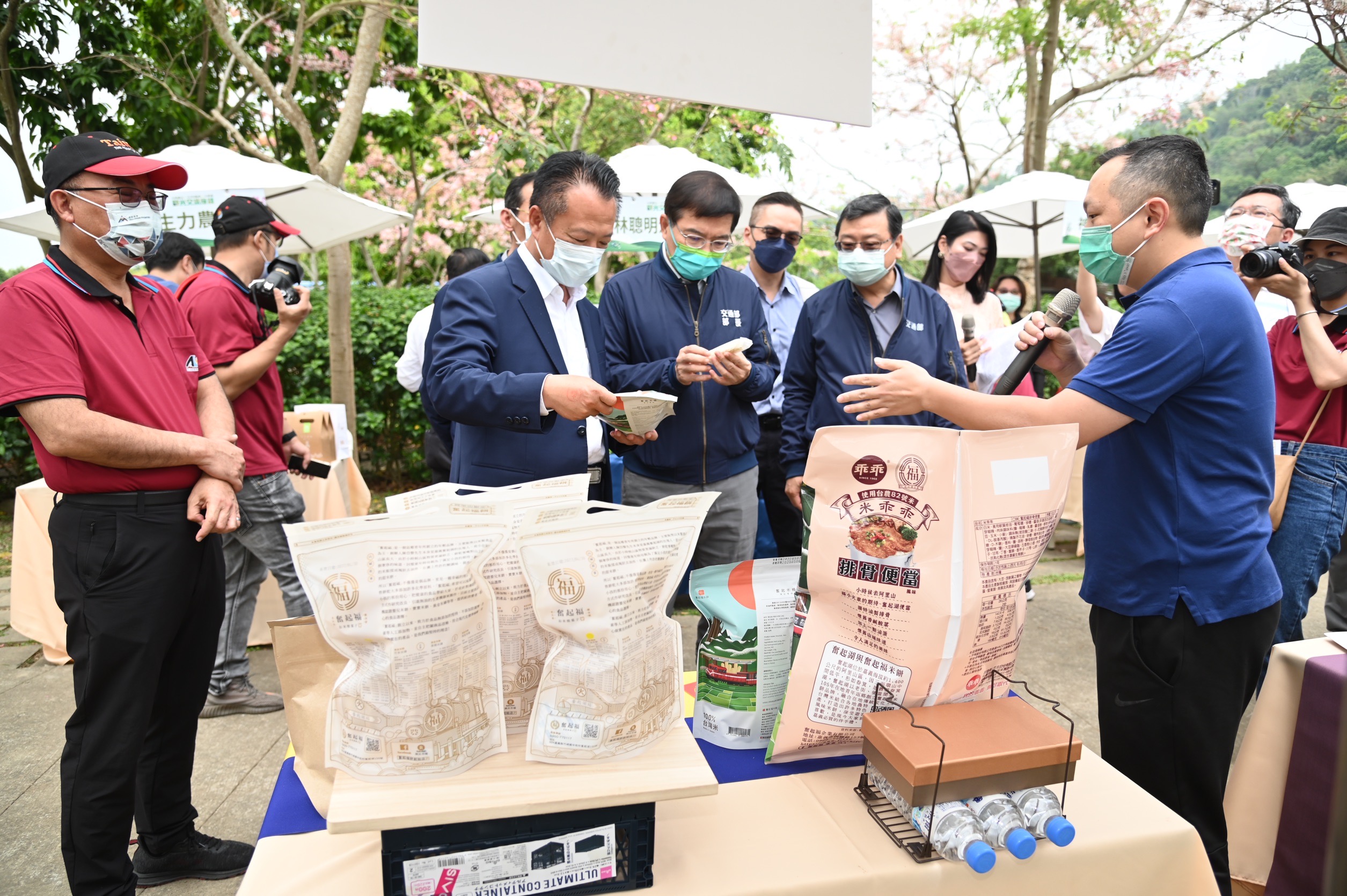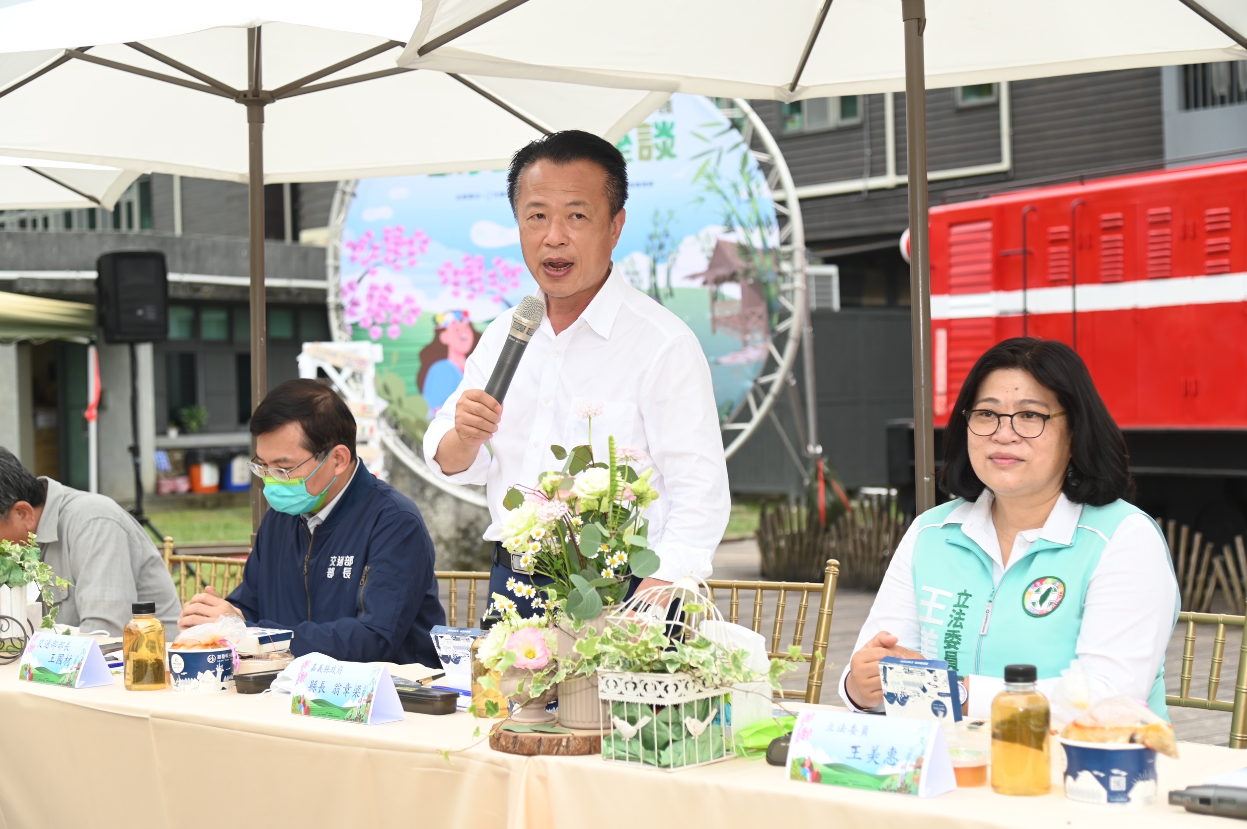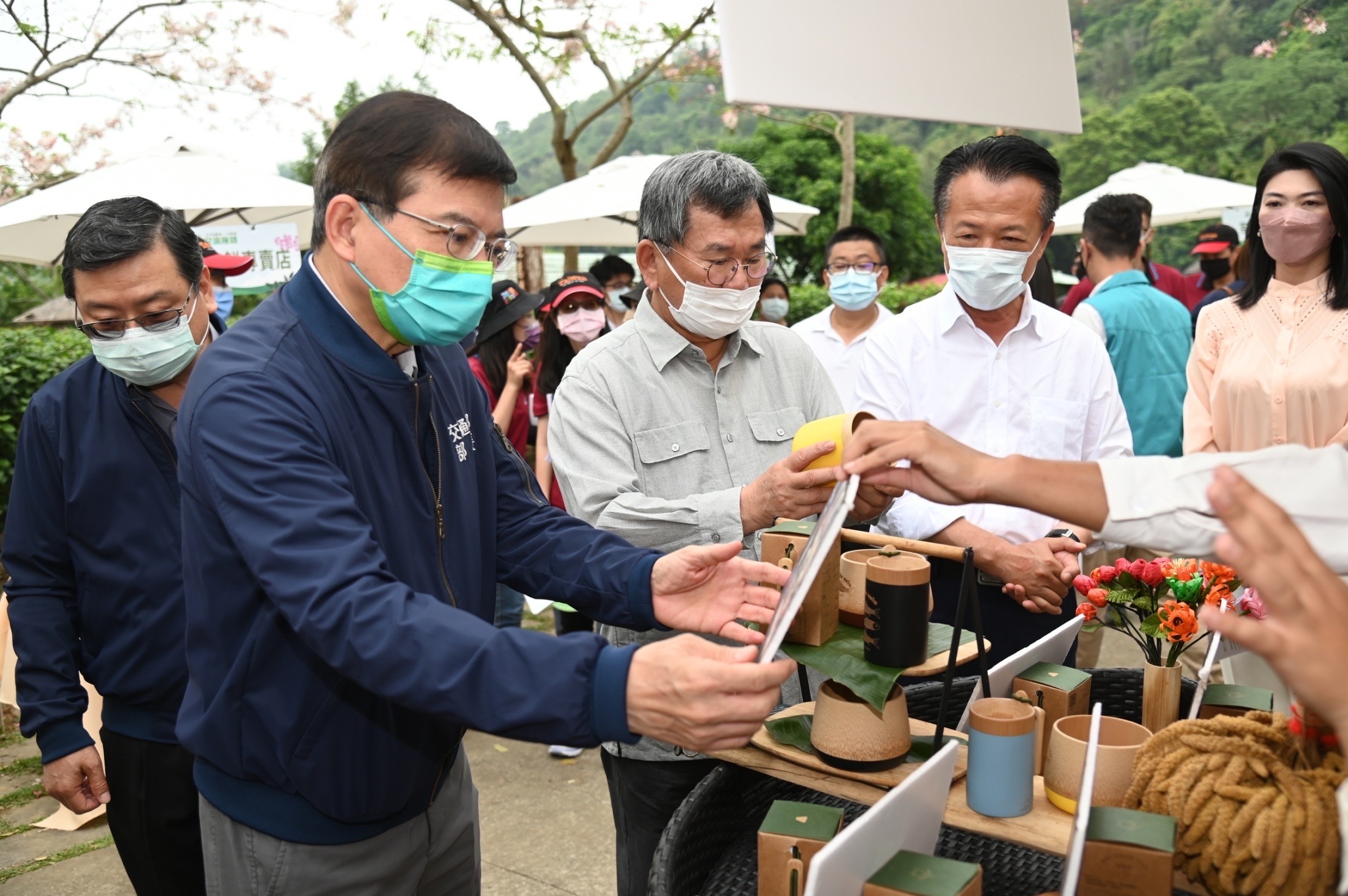 王部長到場後先參觀阿里山管理處輔導觀光圈業者的成果展示攤位,對於在地的老店已由第二代、第三代接棒,他認為年輕人有創意,更懂得研發新產品開拓新市場,有助於老店創新,讓觀光產業走向精緻化也感謝各位產業夥伴一路以來的協助與合作;而青年返鄉可以就近照顧父母,也可以把工作機會留在家鄉,讓地方也充滿希望。