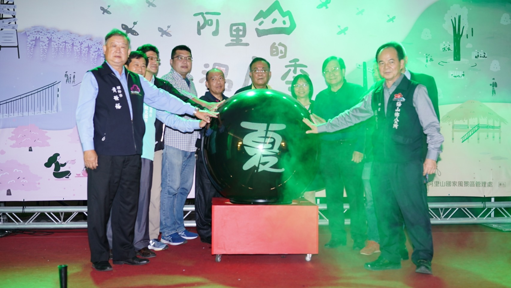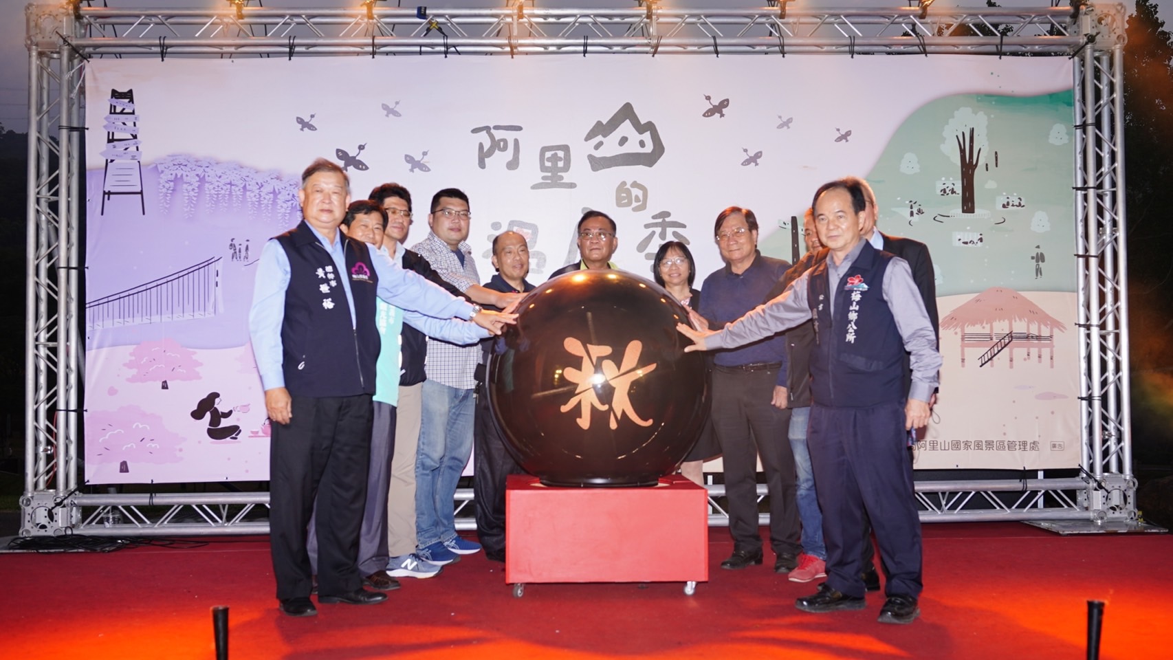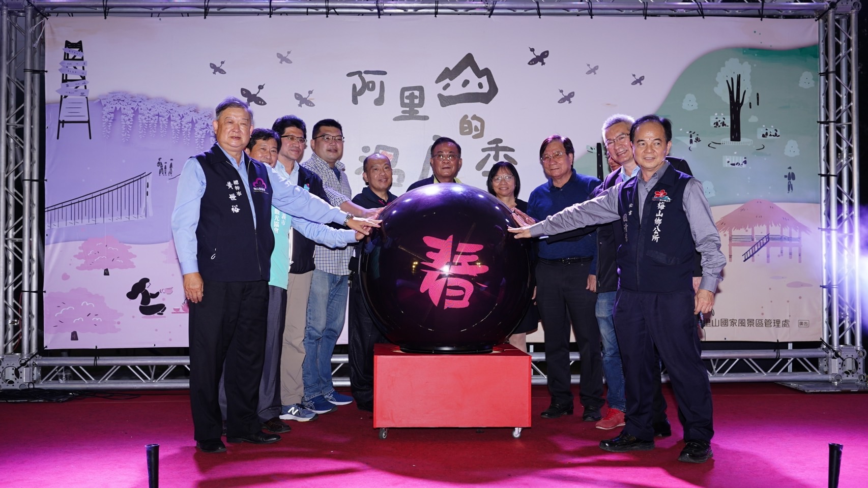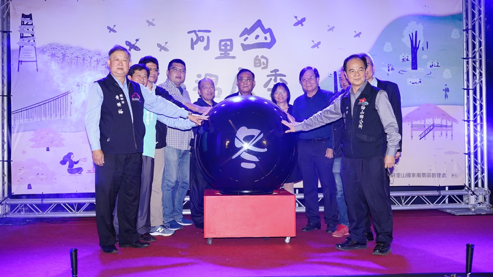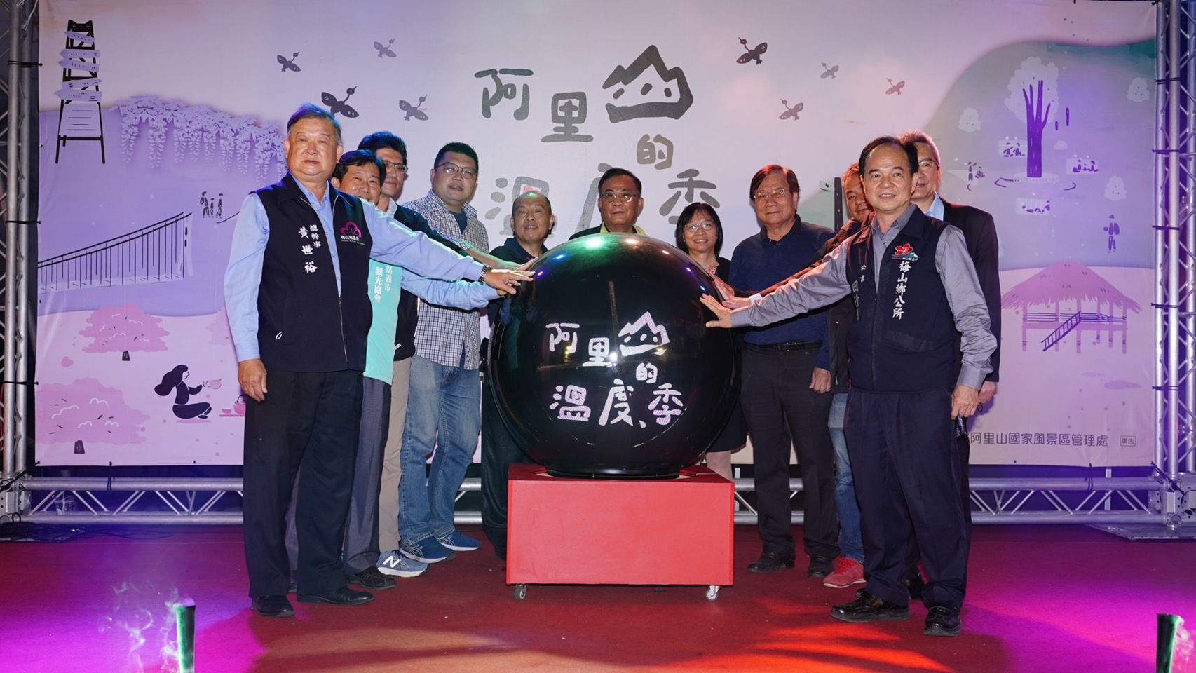 12月16日在牛仔埔大草原舉辦的「阿里山溫度季」啟動記者會,以原民舞蹈傳達阿里山四季風情為開場,透過阿里山的四季舉辦不同主題活動,結合阿里山的雲海、櫻花、紫藤、星空、螢火蟲等地景生態特色,融入原民文化與產業文化活動元素,以音樂會、森林療癒、觀星、茶席活動等,串聯園區內特色的自然、人文、體驗亮點,希望讓更多朋友能夠親自來體驗阿里山風景區之美。本次啟動記者會現場由立法院伍麗華委員特助鄭雅慧、行政院農業委員會水土保持局南投分局秘書陳存凱、嘉義縣議員何子凡、嘉義縣政府文化觀光局企劃科科長陳峰武、嘉義縣梅山鄉公所秘書田清標、嘉義縣番路鄉農會代理總幹事盧淑惠、嘉義縣梅山鄉農會總幹事黃世裕、行政院農業委員會林務局嘉義林區管理處觸口工作站站主任陳志彰、旺萊山鳳梨文化園區董事長劉家發、藍永旗花燈藝術工房負責人藍永旗及轄內各村社區發展協會與各公協會與會代表等貴賓參與的加持下,特別結合牛埔仔愛情大草原的兩座裝置藝術「逐月奔愛」、「月光宮殿」及逐鹿部落旁的「逐鹿風華」進行點燈啟用,將為被譽為愛情絲路的牛埔仔愛情大草原及逐鹿部落增加新亮點。