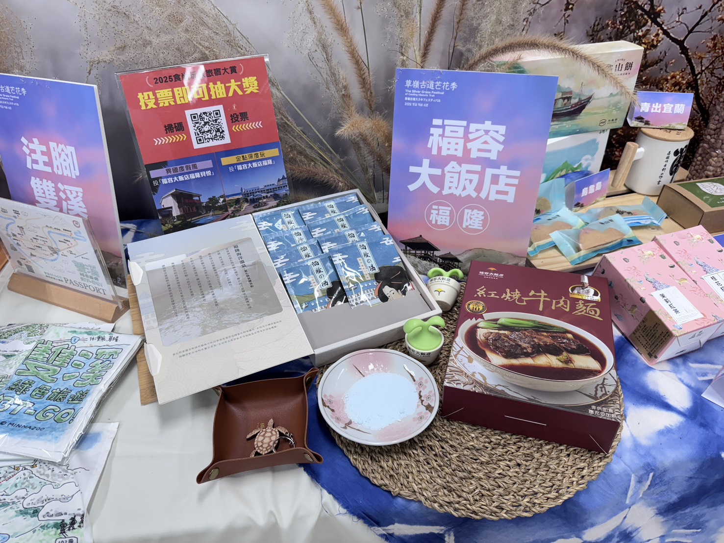 為讓旅客在賞芒之餘,也能將秋日的美好記憶帶回家,2025年草嶺古道芒花季特別攜手在地名店「林元元餅舖」及「福容大飯店福隆」,推出兩款限定伴手禮:「虎字碑綠豆椪禮盒」與「山海慢旅貝果禮盒」,以味蕾延續花季的感動,增添旅程的溫度。