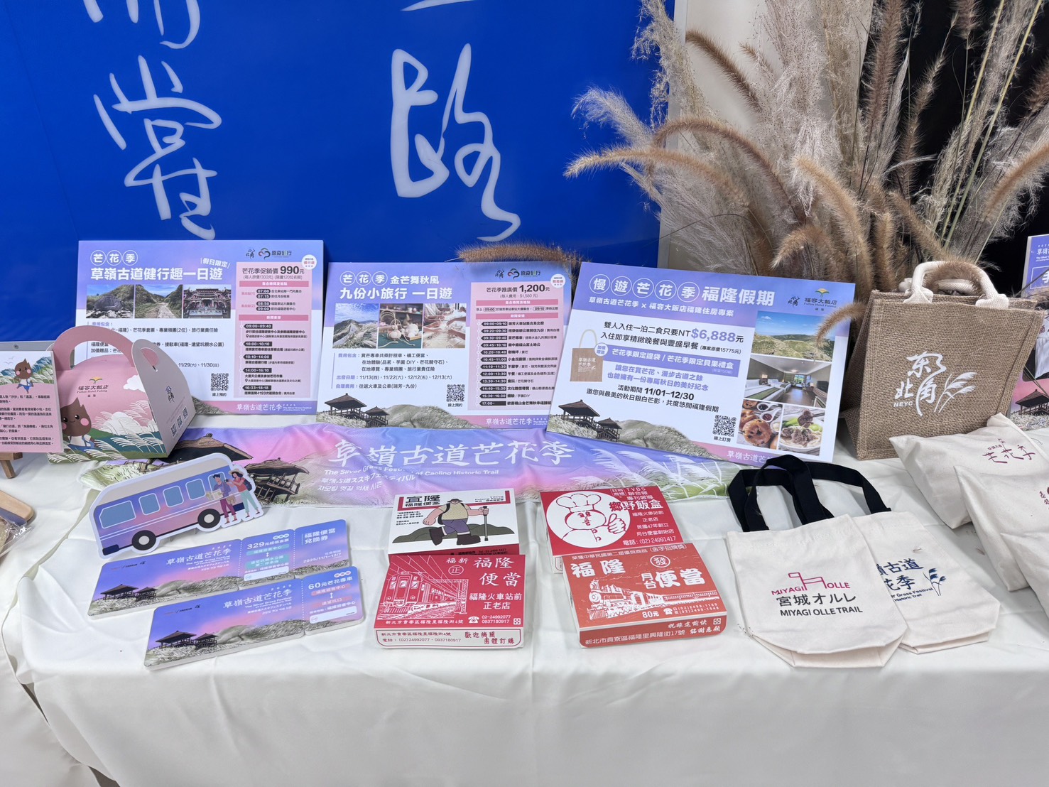 除了草嶺古道欣賞滿山搖曳的芒花外,每逢週五、六、日更安排了多元精采的周邊活動,在福隆及大里的遊客中心,設置了以芒花為主題的意象打卡點,讓遊客留下獨一無二的秋日記憶,每週六、週日推出匯集地方特色業者的「芒著走 花時間市集」,邀請大家慢慢逛、慢慢選;喜愛手作的朋友也別錯過今年推出的多場DIY體驗活動,今年首度於平日(週五)增設平日手作場次,內容有星空酒、茶香午安枕、海廢玻璃小夜燈等,讓更多平日造訪的旅客也能輕鬆參與,為行程增添更多趣味與溫度,超值精選,限量預購。