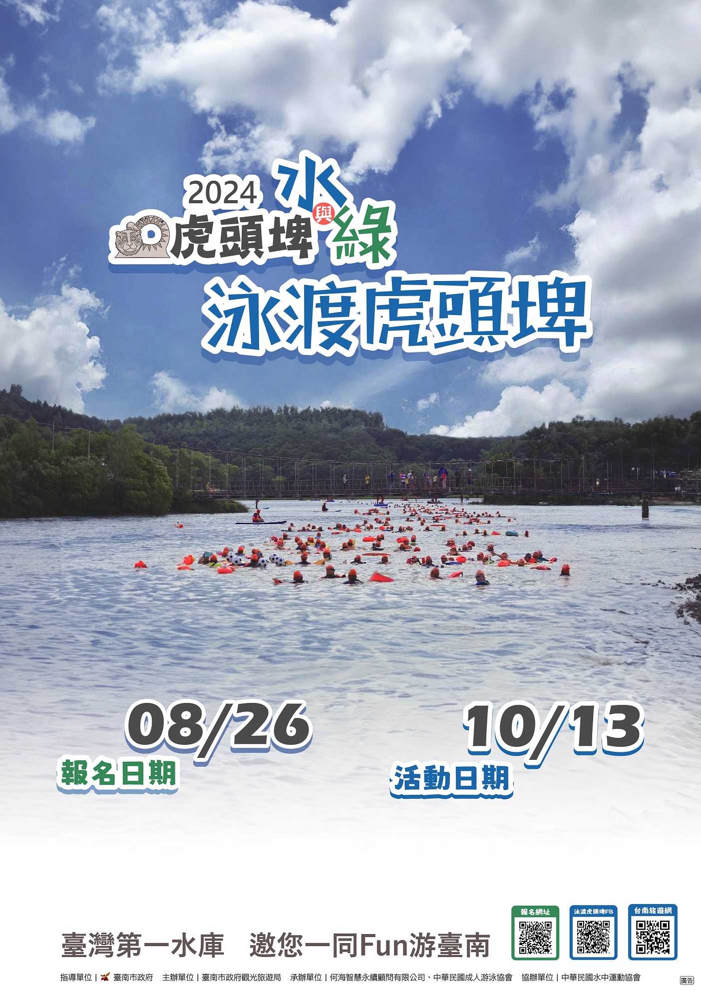 【協助宣傳】案係臺南市政府觀光旅遊局檢送「2024虎頭埤水與綠─泳渡虎頭埤」活動宣傳海報(電子檔)一案。