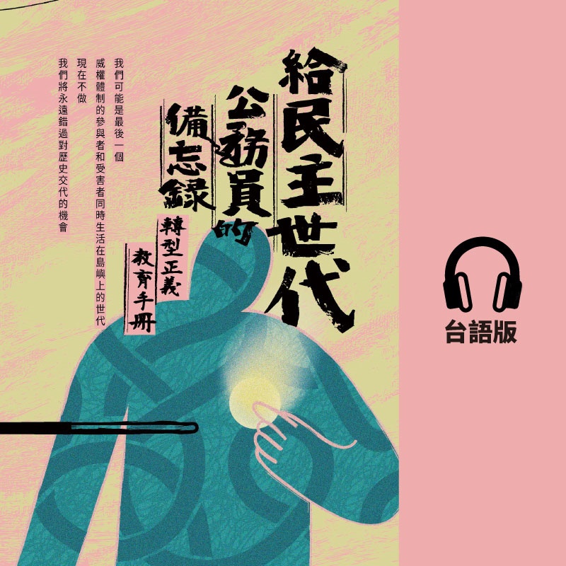 【協助宣傳】案係交通部觀光署函轉行政院人權及轉型正義處製作之有聲書 《給民主世代公務員的備忘錄:轉型正義教育手冊》(華語版、台語版)已上架。