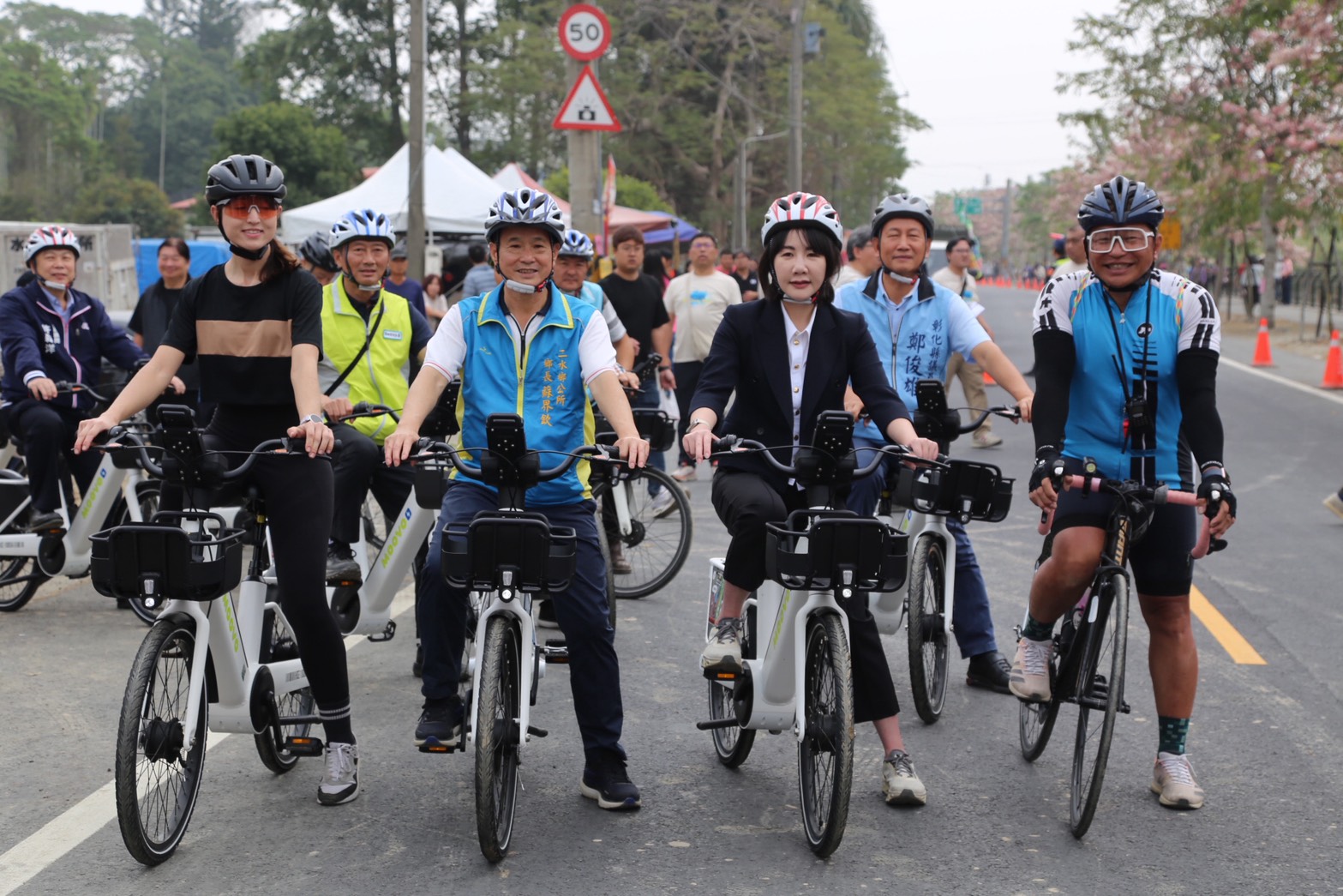 本處處長曹忠猷表示,本次活動主要推動騎旅風氣,希望遊客可以利用現地共享單車進行小鎮旅遊。這次以「鐵道文化×田園風景×小鎮慢遊」為核心設計,全長約12公里、騎乘時間約3小時,路線平緩友善,適合各年齡層輕鬆參與。沿途串聯二水車站、二八水水公園與二水老街等在地景點,其中最吸睛亮點即為近期社群爆紅的「花旗木鐵道」,粉紅花海沿著集集線綻放,火車穿梭期間形成限定版「移動式打卡景觀」,已成為中臺灣春季最具話題的旅遊場景之一。
